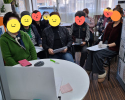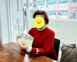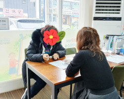 어르신과 함께 서류 작성을 하고 있어요.평소 이름을 쓰실 일이 없는데 한글공부 하신다며 즐거워하시네요^^ ..