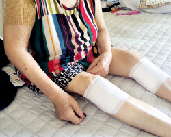 다리가 아프신 어르신을 위해 파스를 붙여드리고 매일 마사지해드리고 있어요 ..