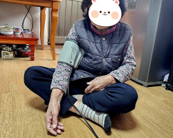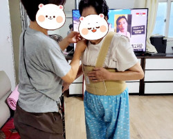 늑골이 골절되신 어르신께서 추가로 다치시지 않도록 활동 전에늑골보호대를 채워드리고 있으세요. ..