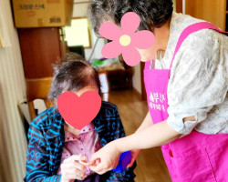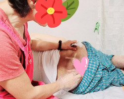 잦은 배뇨실수 때문에 어르신 엉덩이에 욕창이 두 군데 발생하여 선생님께서 매일 소독과 드레싱 처치를 해드렸어요~..