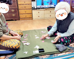 어르신께서 화투놀이를 무척 좋아하셔서 같이 화투를 치고 있어요. 치매 어르신의 인지 유지 및 향상에 많..