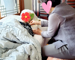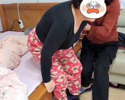 어르신께서 척추측만증으로 침대에서 혼자 일어나시질 못하셔서, 선생님께서부축 도움 드리고 있으시네요~ ..