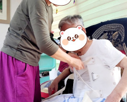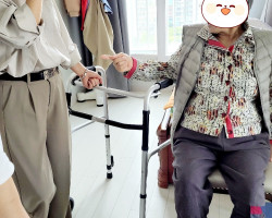어르신께서 낙상으로 허리골절을 당하셔서, 일상생활 하실 때 선생님께서 허리 보조대를 착용시켜 드리고 있어요~ ..