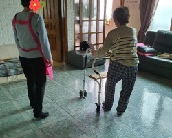 매일 20분 정도씩 워커로 어르신 실내운동 시켜드리고 있어요.돌발적인 낙상 사고 예방을 위해 선생님이 곁에서 지켜보시고 있..