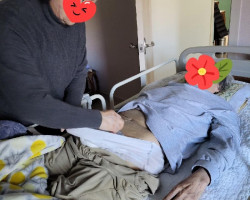선생님이 어르신의 기저귀 상태를 체크하시고 있으시네요. ..