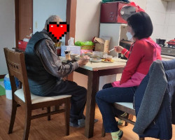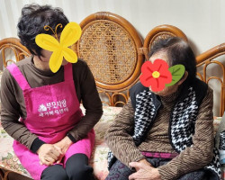 선생님이 식사를 차려드리자 어르신 두 분이 다정하게 식사를 하고 계세요. 할아버님이 젓가락질이 어려워할머님이 반찬을 이것..