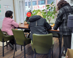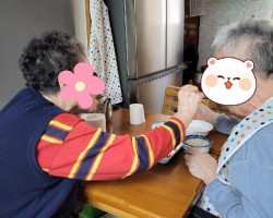 어르신과 식사를 같이 하며 즐겁게 담소를 나누고 있네요~ ..