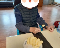 선생님이 깎아 준 사과를 드시면서 젊은 시절 비닐하우스에서 농사 짓던 얘기를 하고 계시네요. &..