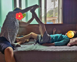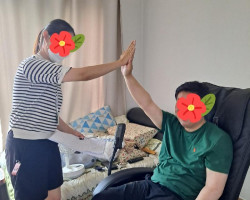 선생님께서 고관절 수술하신 어르신의 재활 훈련을 도와드리고 있네요. ..